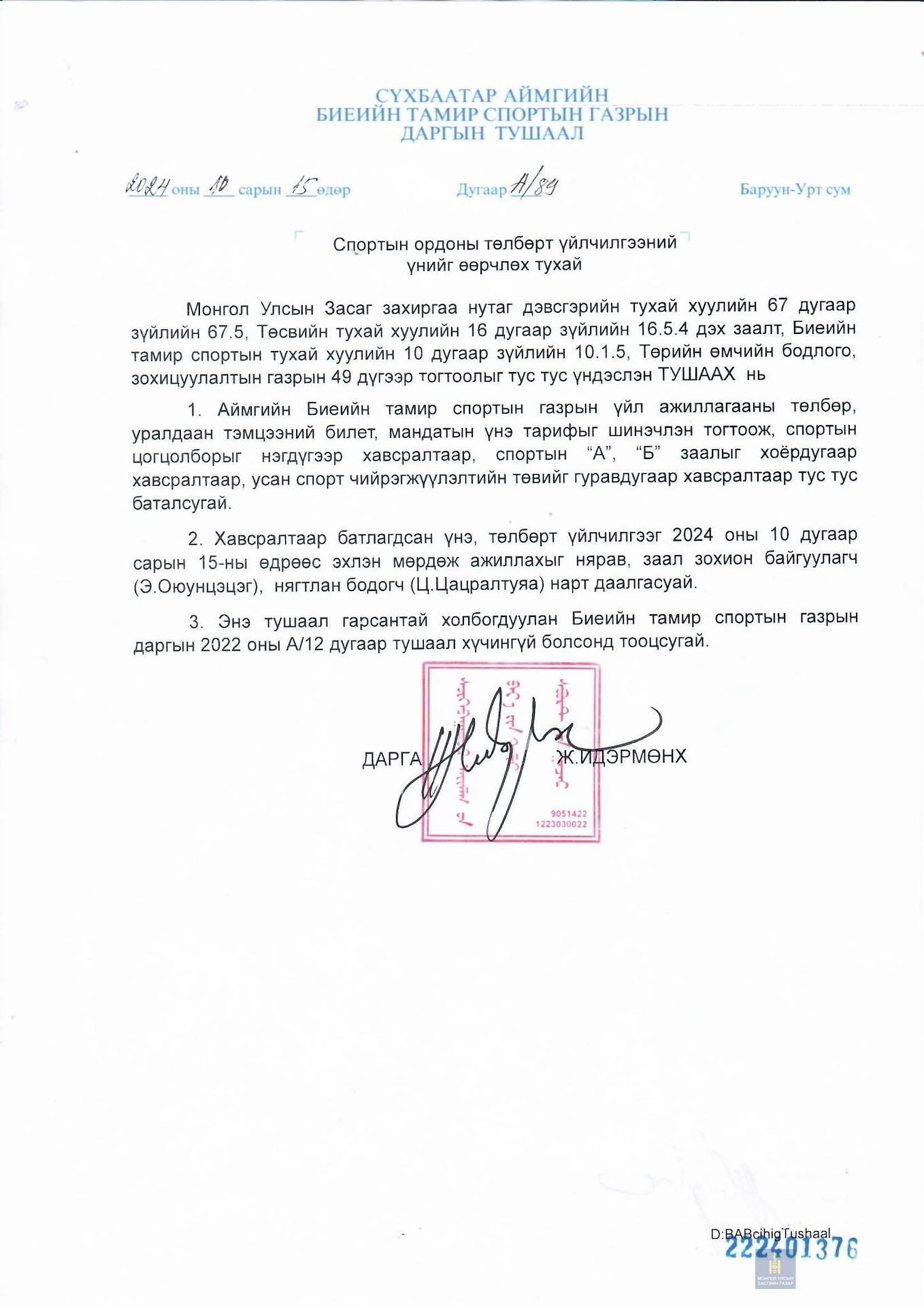 Утас: 70510005 И-мэйл: sukhbaatar@sport.gov.mn