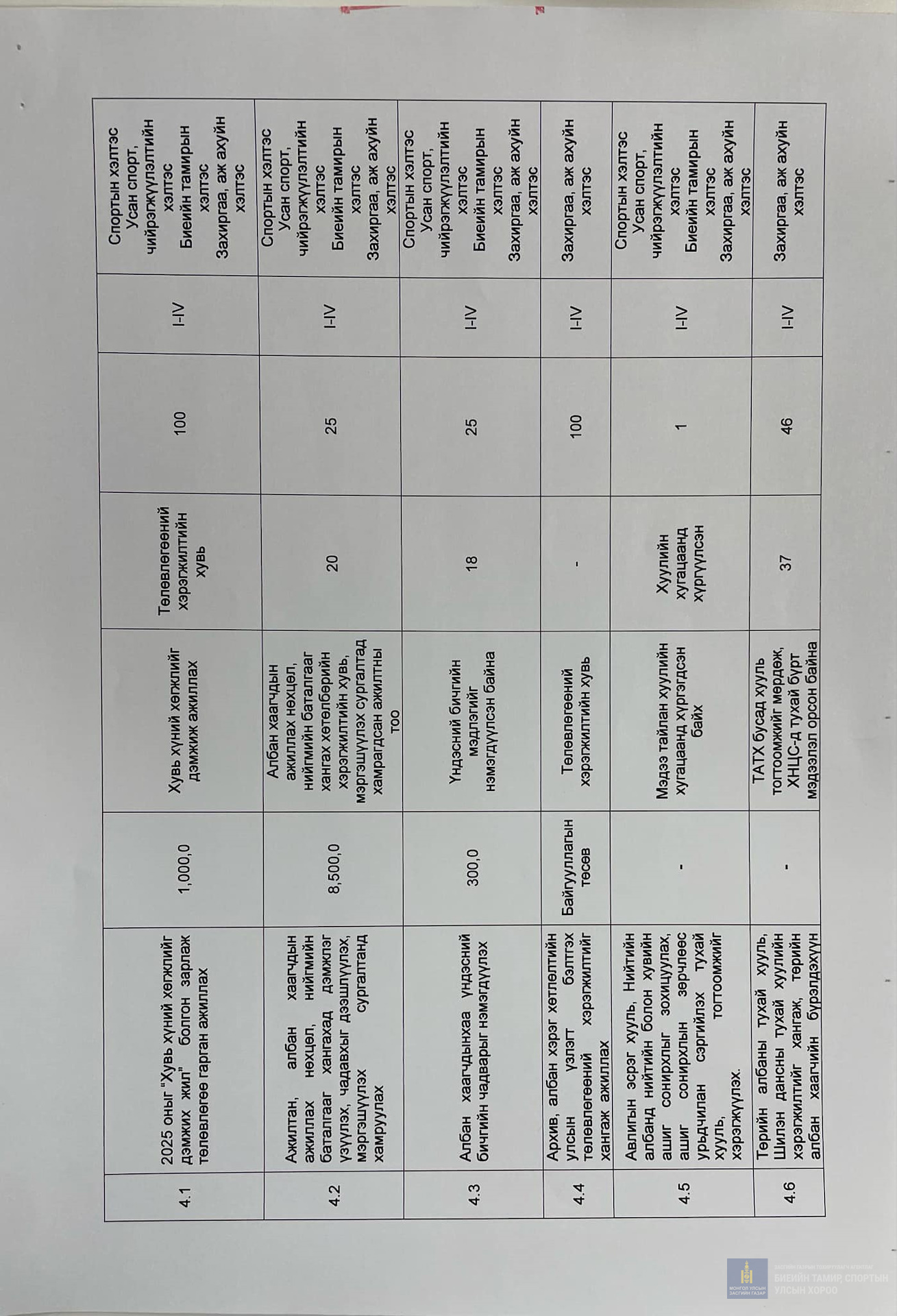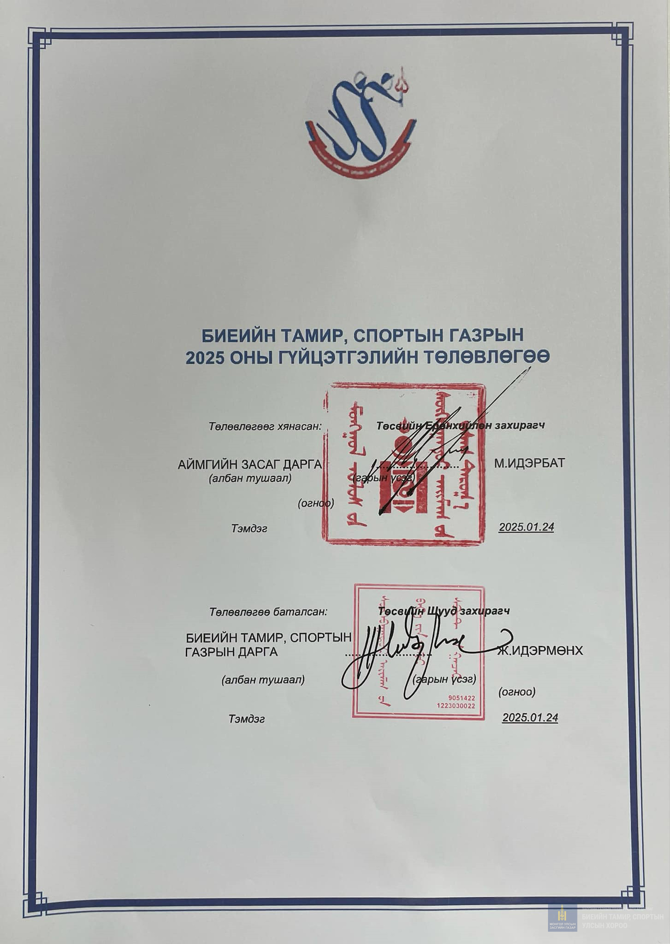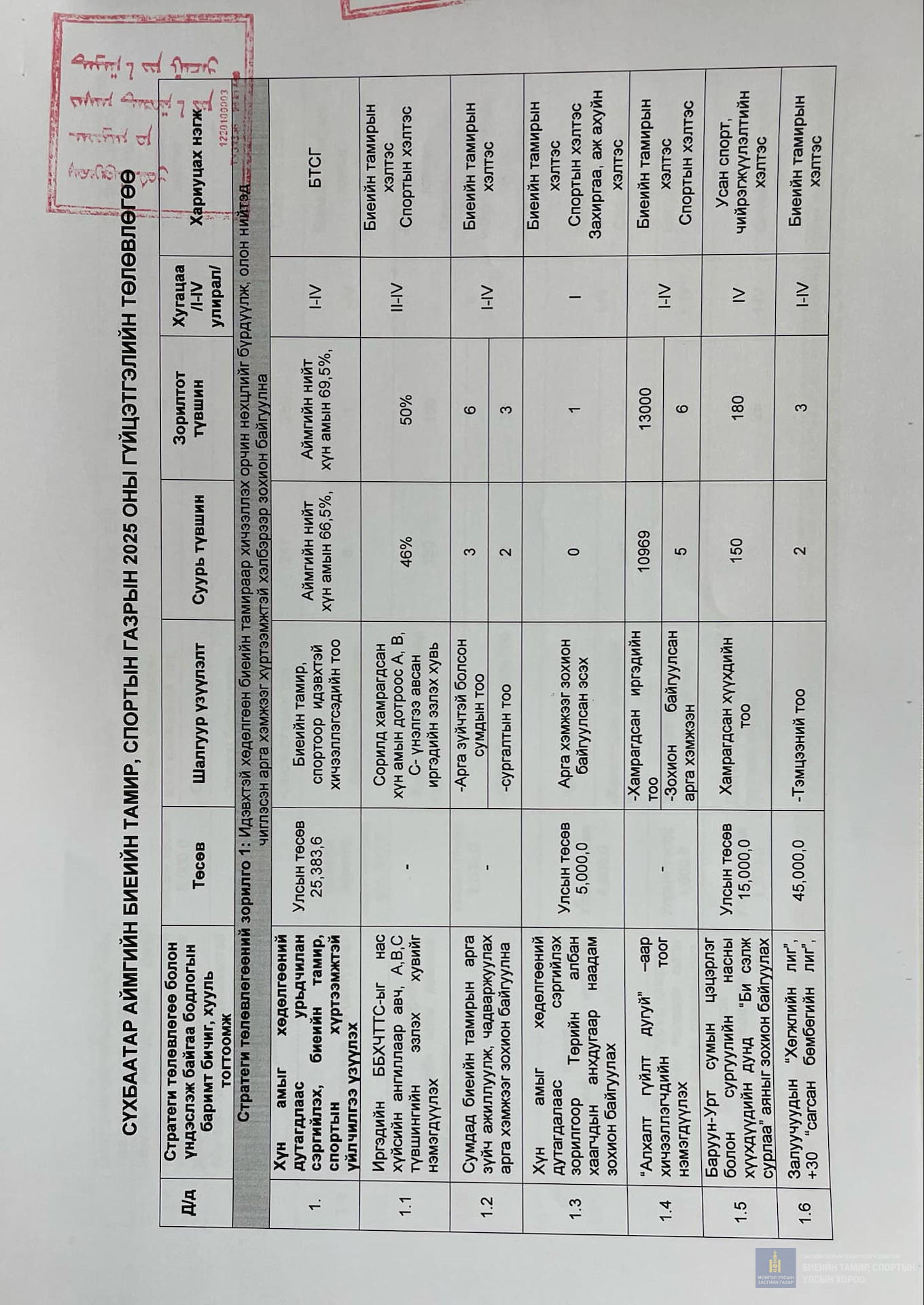 2025 оны гүйцэтгэлийн төлөвлөгөө